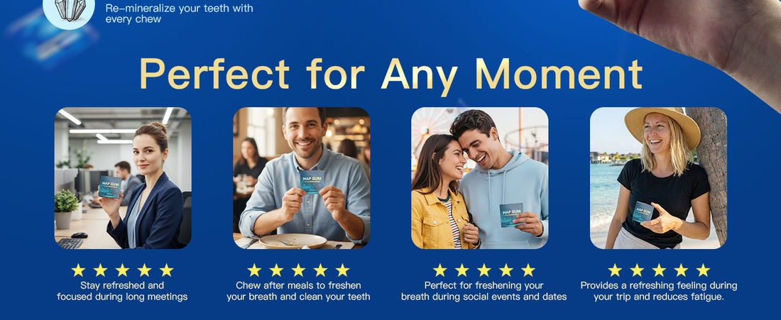 "Combining hydroxyapatite and xylitol in gum isthe perfectly simple solution for your oral health