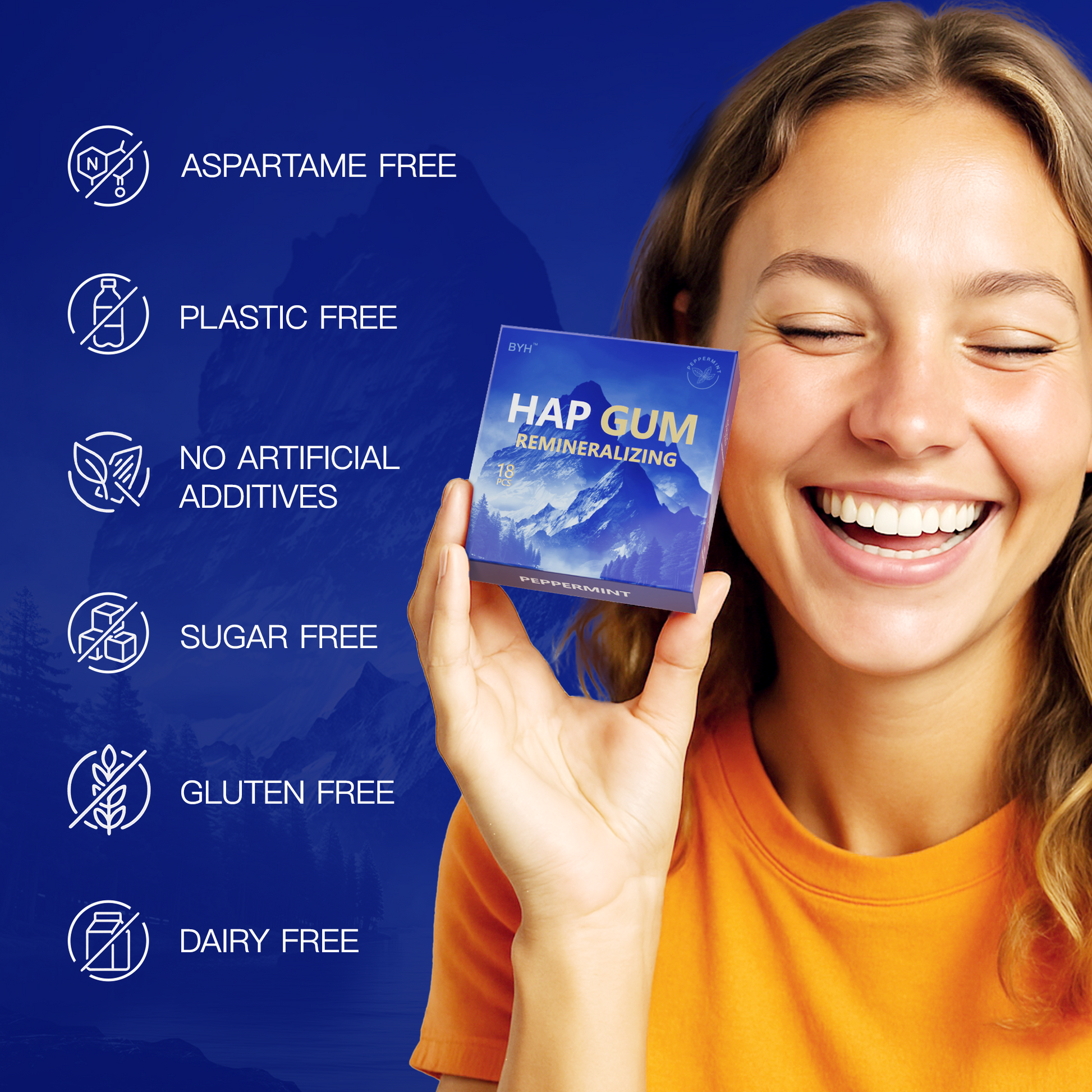 Supports Enamel Health - Enriched with hydroxyapatite (a mineral found in tooth enamel), this chewing gum helps support strong teeth while providing a clean and refreshing chew. Enjoy natural minty freshness that leaves your mouth feeling smooth and revitalized.