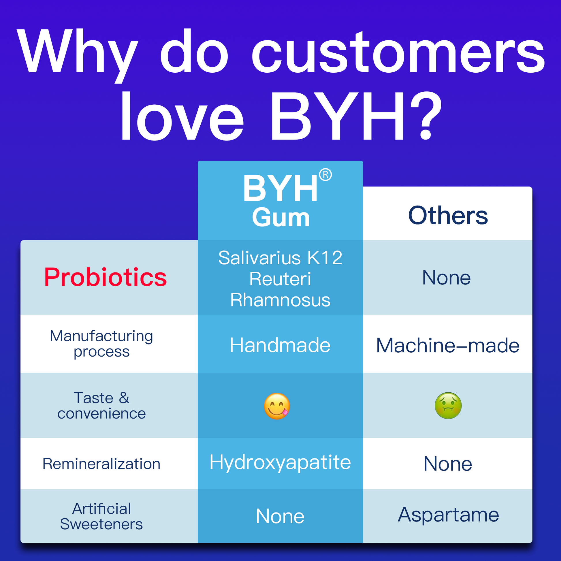 BYH® combines science-backed natural ingredients with dentist-approved formulations. Unlike conventional brands, we avoid synthetic additives, prioritize enamel-safe whitening, and focus on long-term oral health—not just quick fixes.