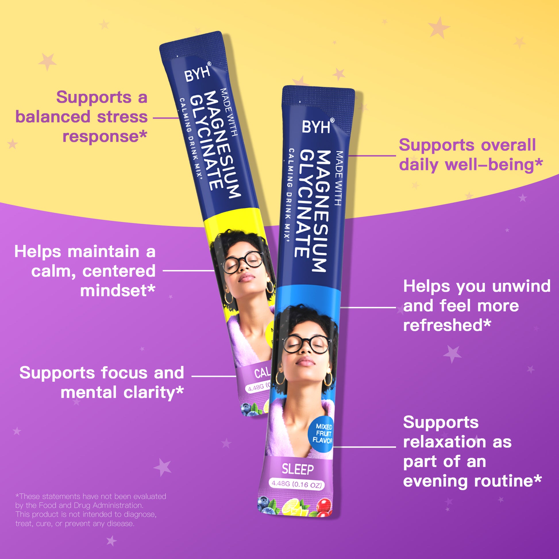 Nighttime Relaxation: The evening formula combines magnesium glycinate, GABA, and L-theanine to help soothe your mind and body for restful sleep. Take one packet before bed to seamlessly integrate into your nightly routine.